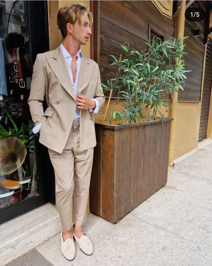 L'abito bottone perla è una scelta elegante e raffinata. Con una giacca che sfoggia una leggera lunghezza extra e capri dal taglio dritto, è un look senza tempo che offre una silhouette perfetta.