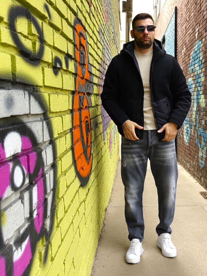 Il Bomber Winter è il giubbotto ideale per affrontare l'inverno con stile e comodità. Realizzato per la stagione invernale, veste regolare e offre un calore avvolgente in qualsiasi condizione climatica. Il modello, alto 1.77 e peso 77 kg, ne è un perfetto esempio.