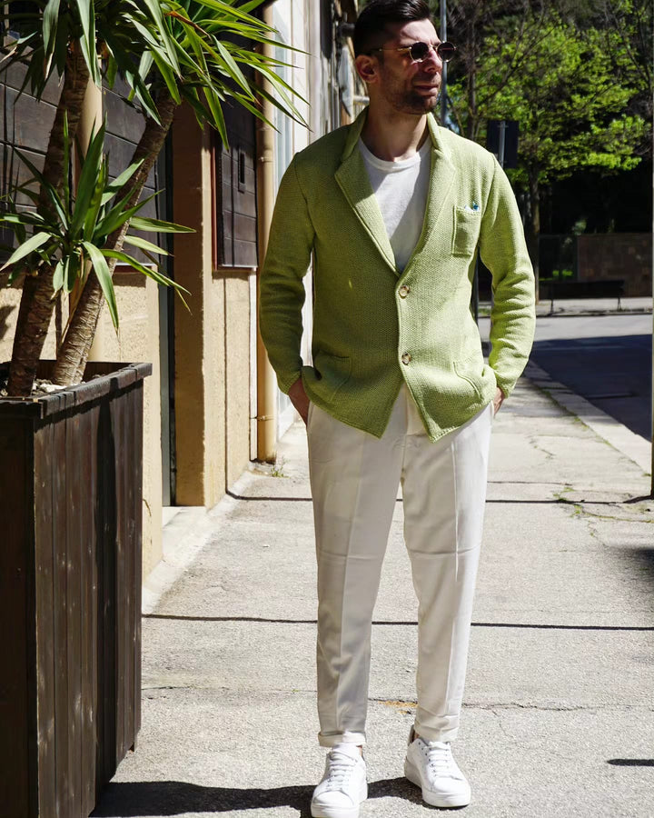 Realizzato per la primavera e l'estate, questo cardigan giacca sfiabcata è lavorato con cura e attenzione ai dettagli. Il suo design unico è perfetto per aggiungere uno stile sofisticato e leggero al tuo guardaroba. Scopri la qualità della lavorazione artigianale con questo capo versatile.