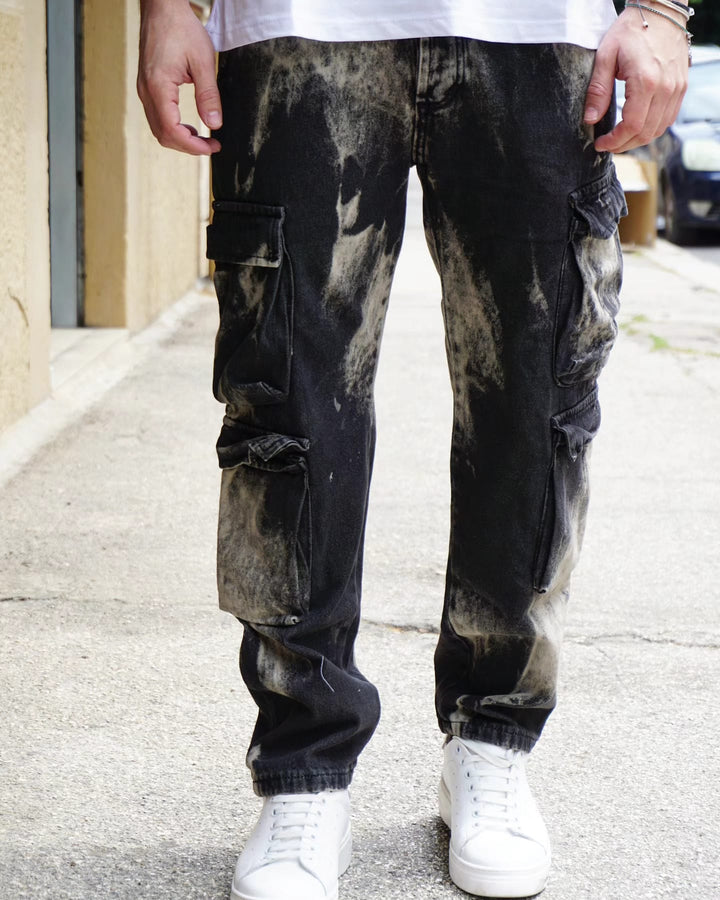 Cargo slavato in tessuto jeans con tasche e regolazione della vita. Comodo, pratico e alla moda, questo cargo è perfetto per tenere tutto ciò che ti serve a portata di mano. La regolazione della vita ti permette di adattarlo perfettamente al tuo corpo, donandoti un look moderno e casual.