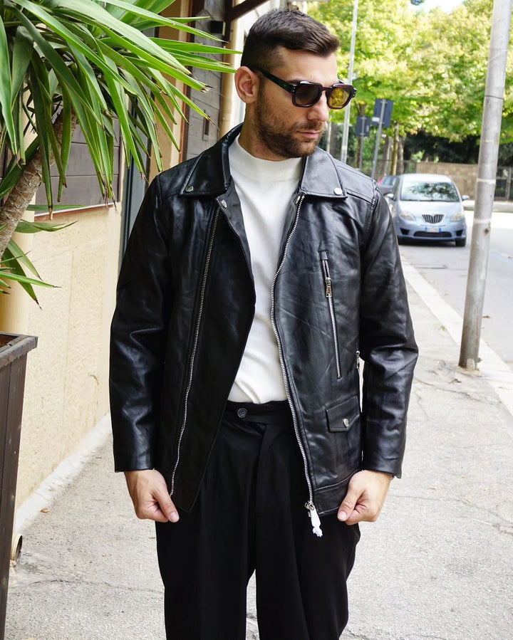 Chiodo Eco è un giubbino di pelle al 100% ecologico, realizzato con materiali di qualità eccellente per una durata superiore. Dotato di finiture raffinate per un look moderno, è ideale sia per i look casual che per quelli più eleganti. Una scelta sostenibile per un capo duraturo e senza compromessi.