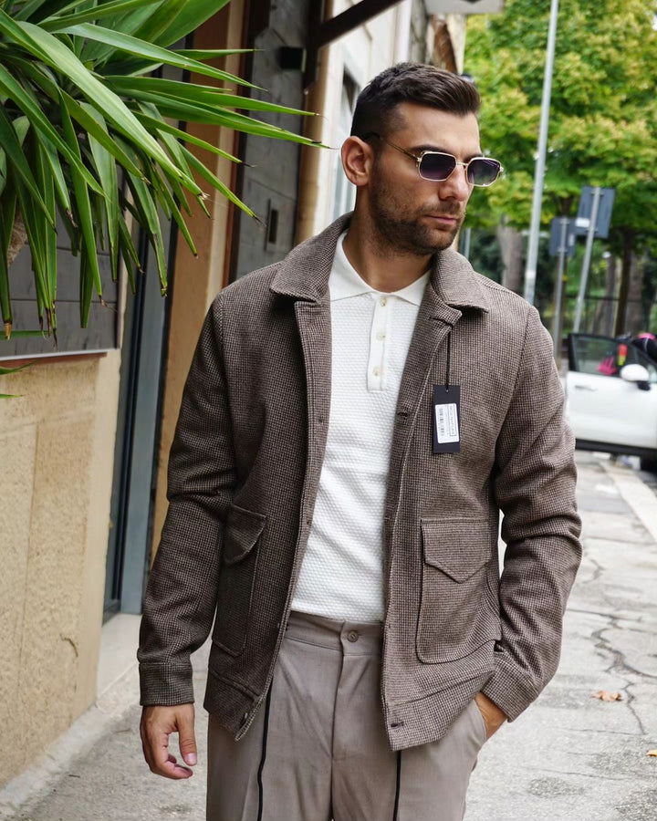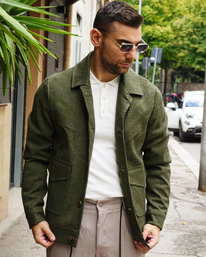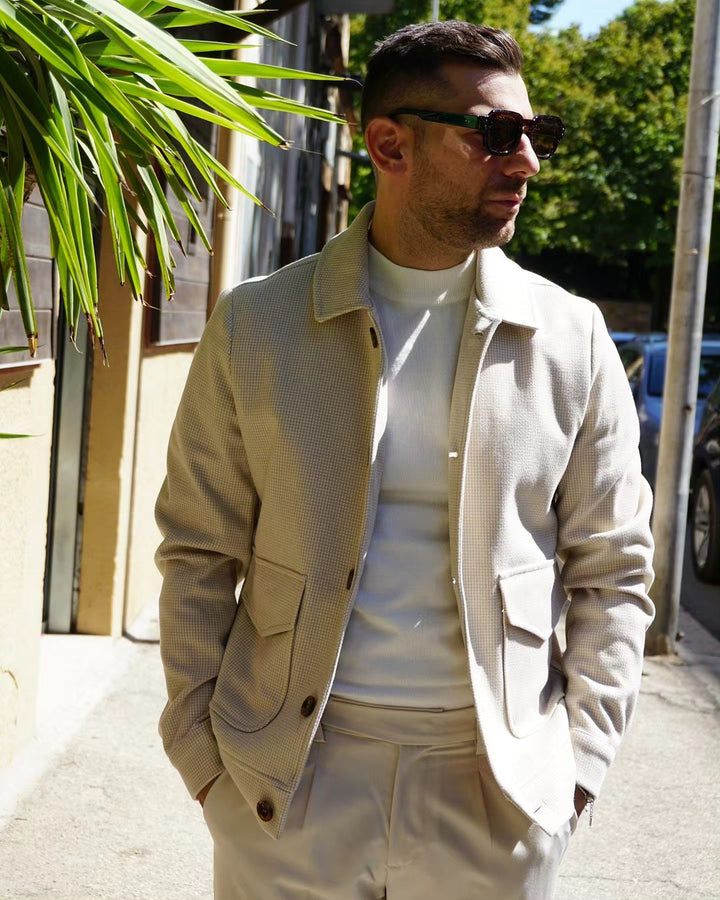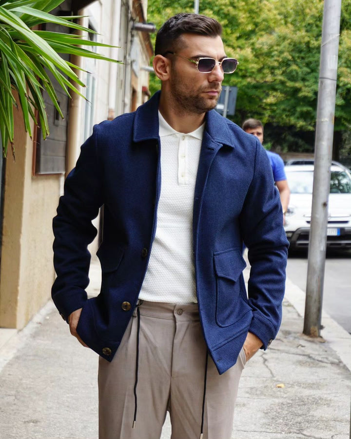 Questo giaccone di design è caratterizzato da un tessuto lavorato che lo rende unico e elegante. Il colletto e le tasche laterali aggiungono funzionalità e stile. Il taglio sfiancato valorizza la figura e si adatta a diverse conformazioni fisiche. Perfetto per un look sofisticato e moderno. il modello indossa una m alto 177 peso 77 kg