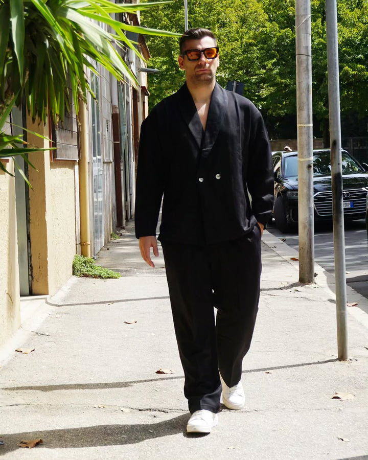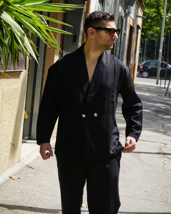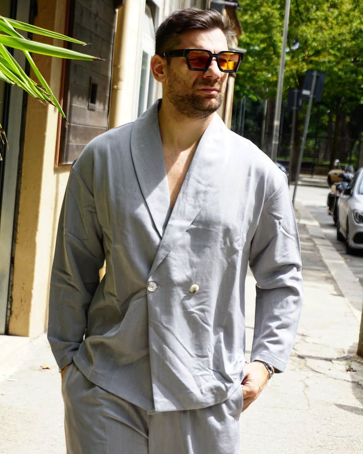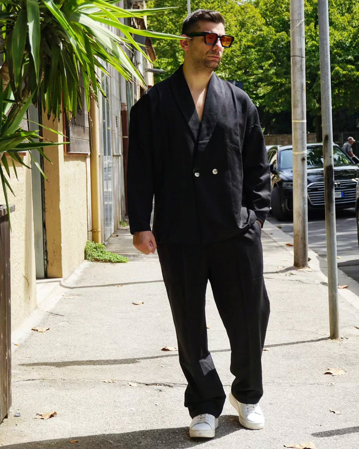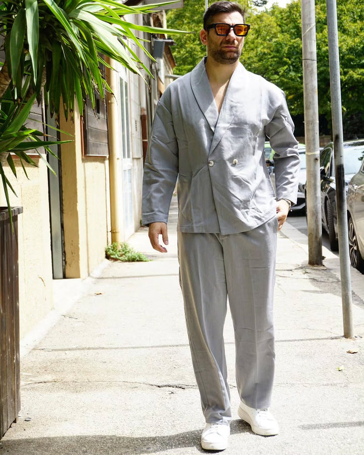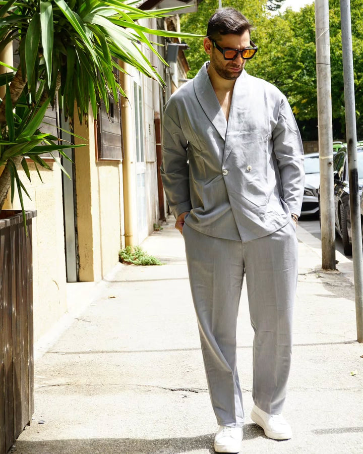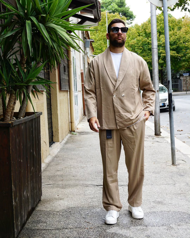 Il completo è un'opzione elegante per l'autunno inverno l'estate. Realizzato in stile, presenta due bottoni che aggiunge un tocco di classe al pantalone. Completo perfetto per le occasioni speciali.