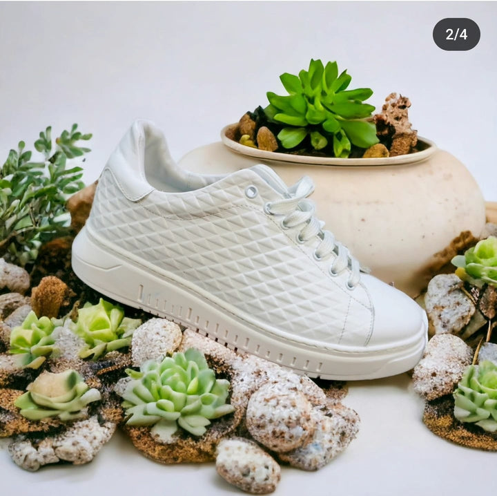 La nostra scarpa sportiva in vera pelle è la scelta perfetta per il tuo stile di vita attivo e alla moda. Realizzata con materiali di alta qualità, questa scarpa combina comfort e stile senza sforzo. Sia che tu stia allenandoti in palestra o semplicemente godendoti una passeggiata in città, questa scarpa si adatta perfettamente a qualsiasi occasione. Con la sua elegante pelle e il design versatile, questa scarpa è l'accessorio ideale per il tuo outfit quotidiano. Cammina con fiducia, comfort e stile."