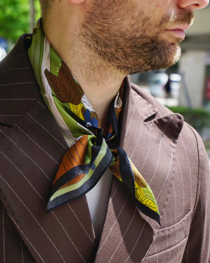 Scopri il nostro foulard uomo in elegante fantasia. Realizzato con tessuti di altissima qualità, offre un design unico e un tocco di stile a ogni outfit. Aggiungi un tocco di classe al tuo guardaroba con il nostro foulard.