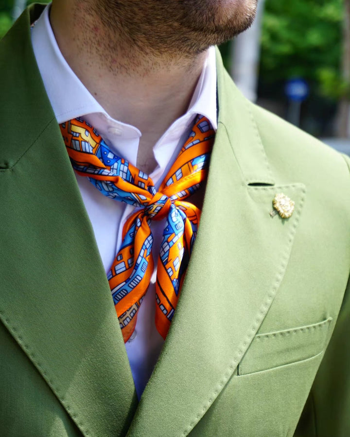 Scopri il nostro foulard uomo in elegante fantasia. Realizzato con tessuti di altissima qualità, offre un design unico e un tocco di stile a ogni outfit. Aggiungi un tocco di classe al tuo guardaroba con il nostro foulard.
