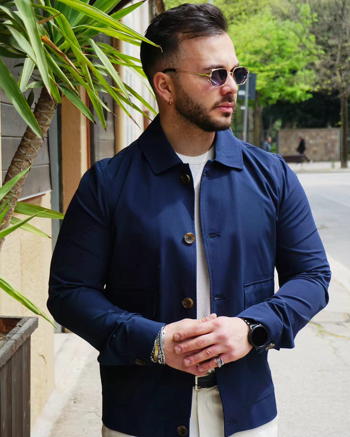 In tessuto morbido e liscio, giubbino college di primavera estate veste regolarmente e offre una sensazione confortevole. Ideale per la stagione calda, il tessuto tecnico offre una vestibilità perfetta.