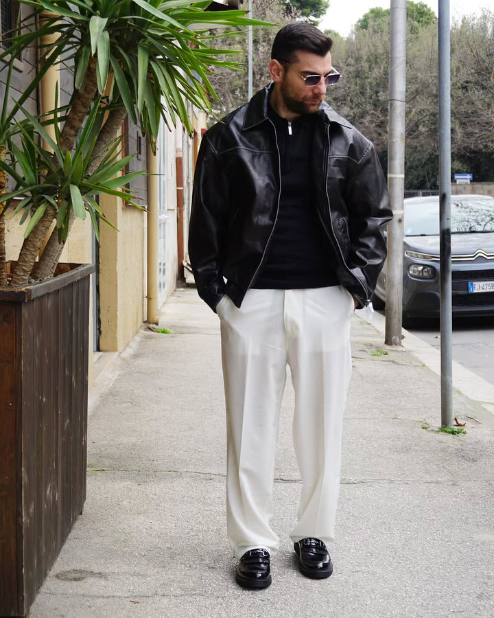 Chiodo Eco è un giubbino di pelle al 100% ecologico, realizzato con materiali di qualità eccellente per una durata superiore. Dotato di finiture raffinate per un look moderno, è ideale sia per i look casual che per quelli più eleganti. Una scelta sostenibile per un capo duraturo e senza compromessi.