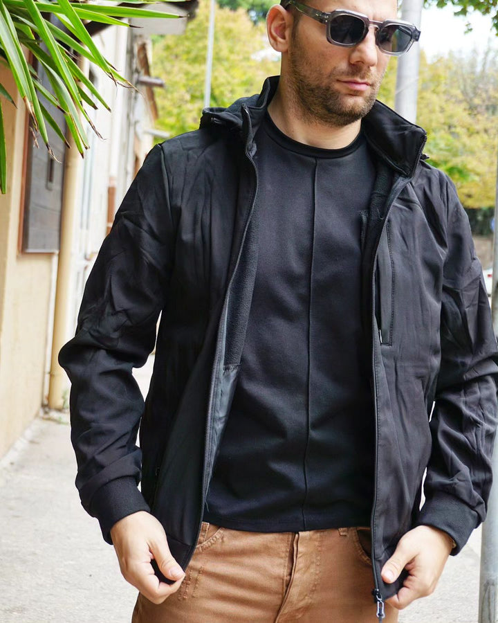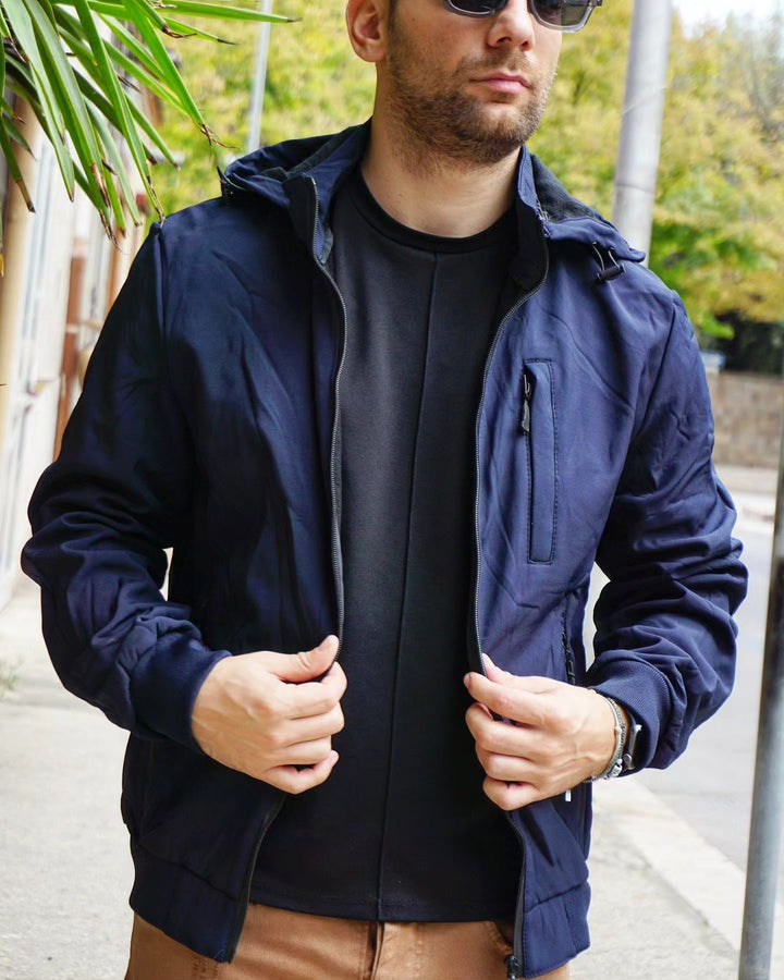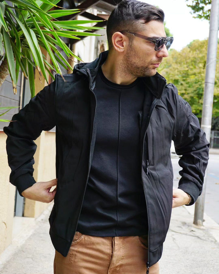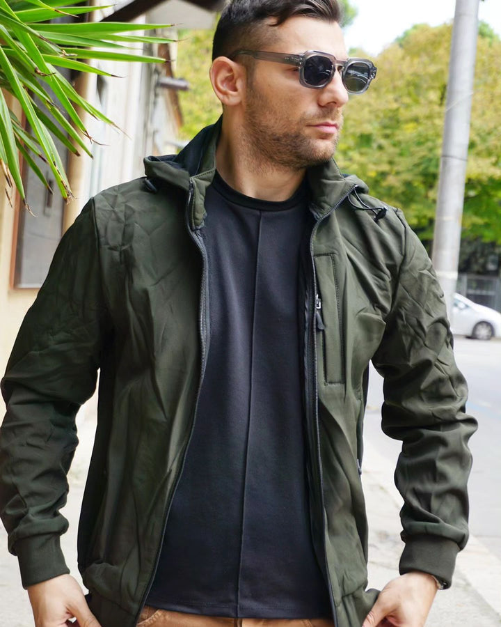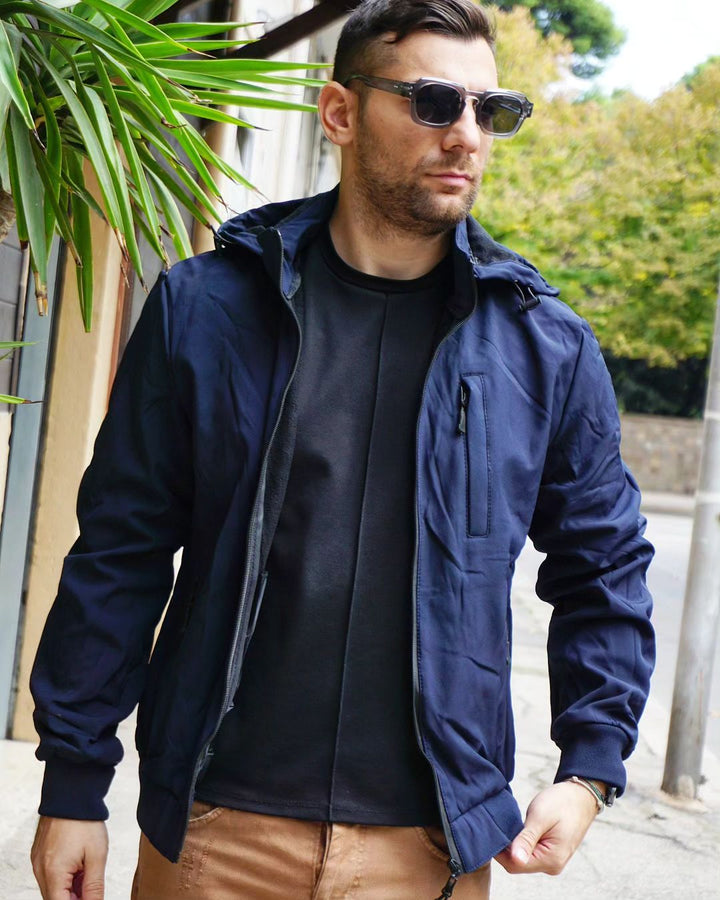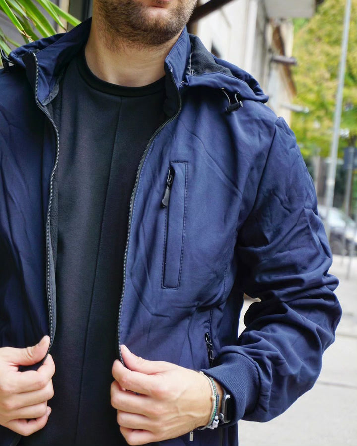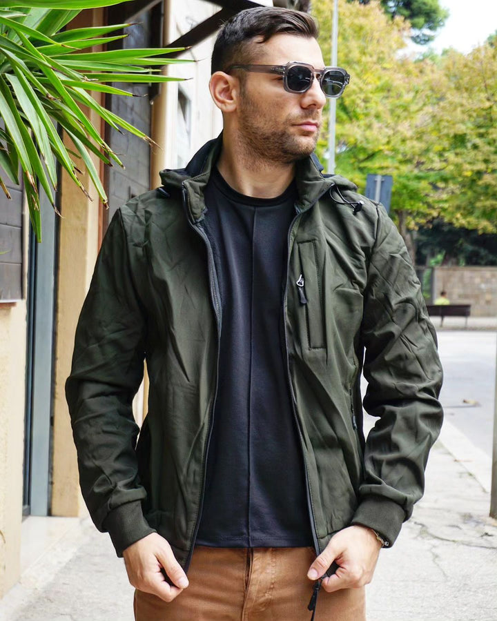 Esplora l'outdoor con il nostro giubbino impermeabile! Con cappuccio, tasca sul petto e vestibilità regolare, questo giubbino offre protezione contro il vento e una vestibilità personalizzata grazie alla regolazione sul fondo. polsini elastici, Ideale per chi vuole affrontare ogni avventura con comodità e stile. il modello indossa la m peso 77 kg altezza 1.77 , per una vestibilità perfetta per ogni occasione.