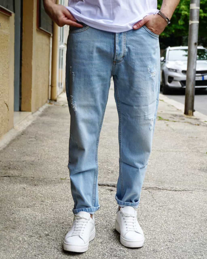 I jeans nero strappato sono confezionati con tessuto resistente per garantire un notevole comfort e praticità durante l'utilizzo. offrono durata e resistenza. Sono dotati di ricami iconici e lavaggio a vita alta per un look alla moda.