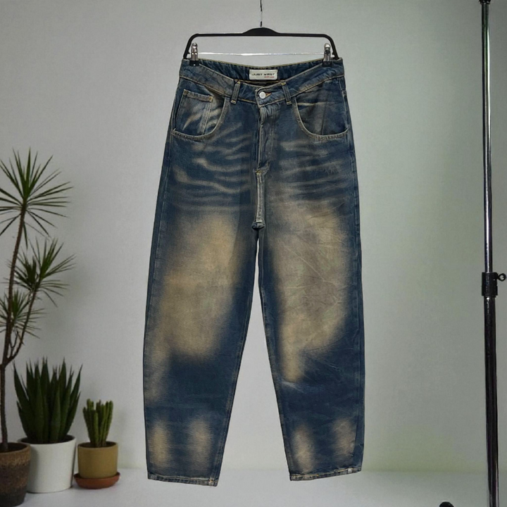I jeans fond largo sono perfetti per uno stile casual e comodo. Realizzati in tessuto slavato grigio e sabbia, donano un look originale e moderno. Il fondo largo aggiunge un tocco di eleganza e rende questi jeans indispensabili per ogni occasione. io modello indossa la 46 alto 1.77 peso 77 kg
