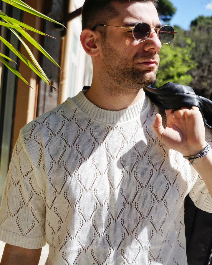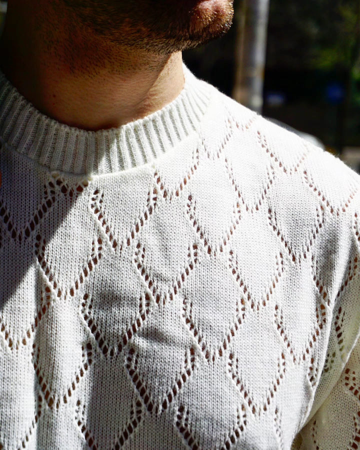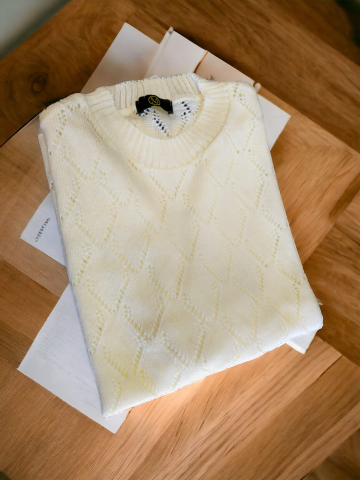 Questa maglia lavorata è perfetta per tutte le occasioni, grazie alla sua vestibilità semi over e comoda. Realizzata con una lavorazione di alta qualità, garantisce un look elegante e versatile. Ideale per un uso quotidiano o per un'occasione speciale, questa maglia è un must-have nel tuo guardaroba.
