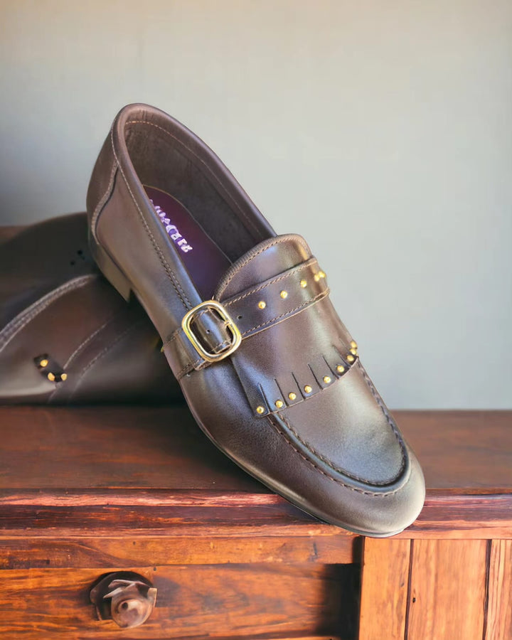Questo Mocassino lavorato è realizzato con un inserto unico che lo rende disponibile anche in una versione straniera, perfetto per chi vuole distinguersi con stile. Con una calza regolare e tonalità testa di moro, è ideale per un look elegante e sofisticato.