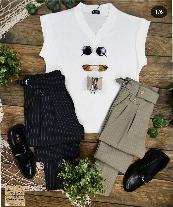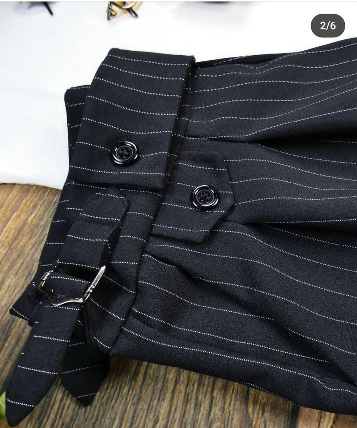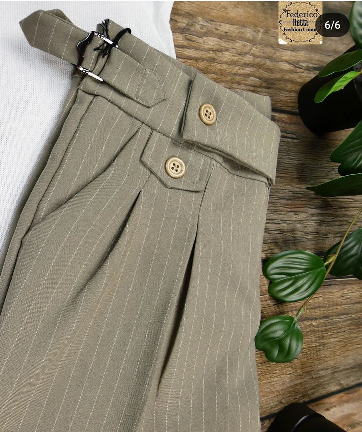 pantalone gessato sartoriale con fibbie veste regolare tessuto poly