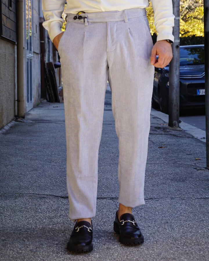 I pantaloni velluto a costine con chiusura laterale offrono una vestibilità aderente e comoda. Realizzati in tessuto di qualità, dalla superficie lucida, questi pantaloni sono resistenti e durano nel tempo. Una scelta unica per stili di tendenza.
