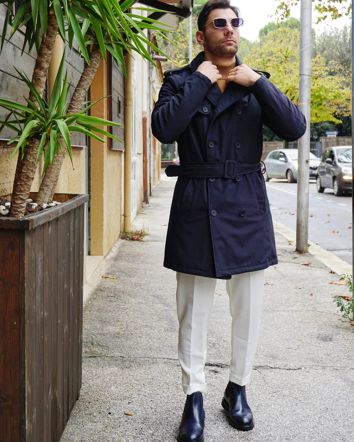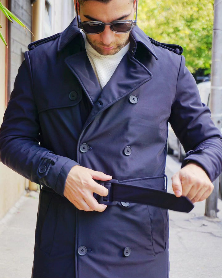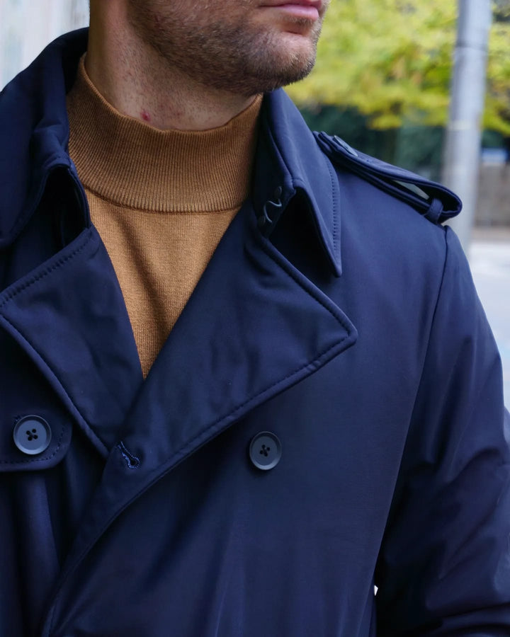 veste regolare 🧥 Stile senza compromessi! Il nostro trench con cinturone è la quintessenza dell'eleganza. Vestibilità perfetta dalla S alla 2XL, trapuntato per il massimo comfort. Caldo e versatile, perfetto per ogni occasione. Disponibile in un elegante blu. il modello indossa la m alto 1.77 peso 77kg