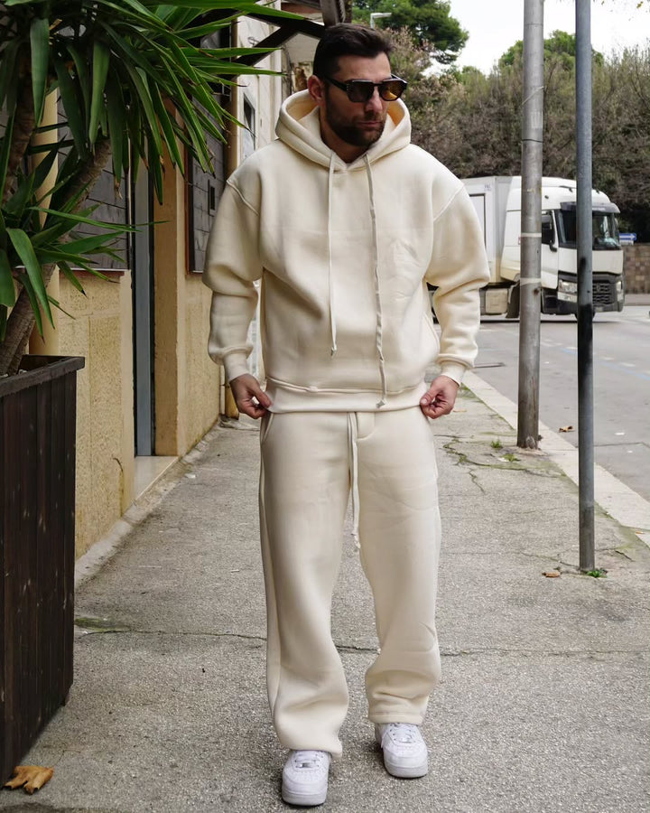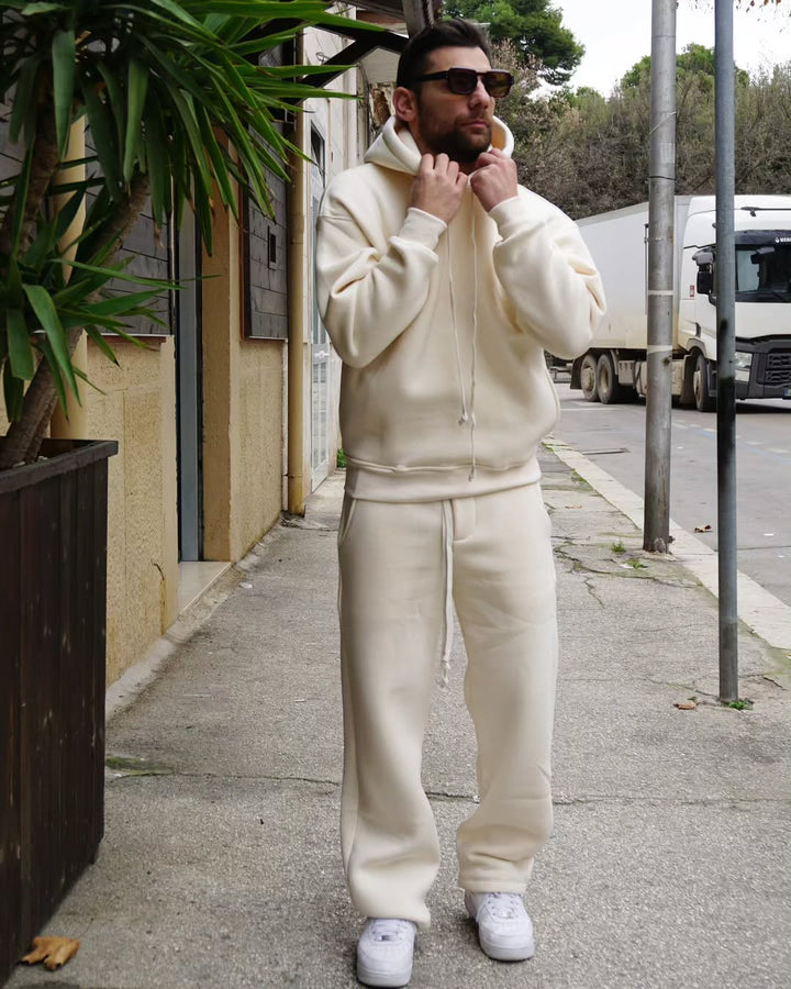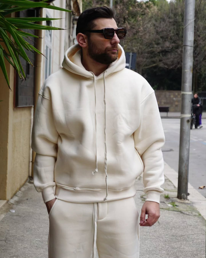 Scopri il comfort e lo stile unico delle nostre tute relax. Il modello, alto 1.77m e con un peso di 77 kg, indossa una vestibilità regolare per garantire il massimo della comodità. Realizzata con tessuti di alta qualità, la tuta lavorata è prodotta interamente in Italia.